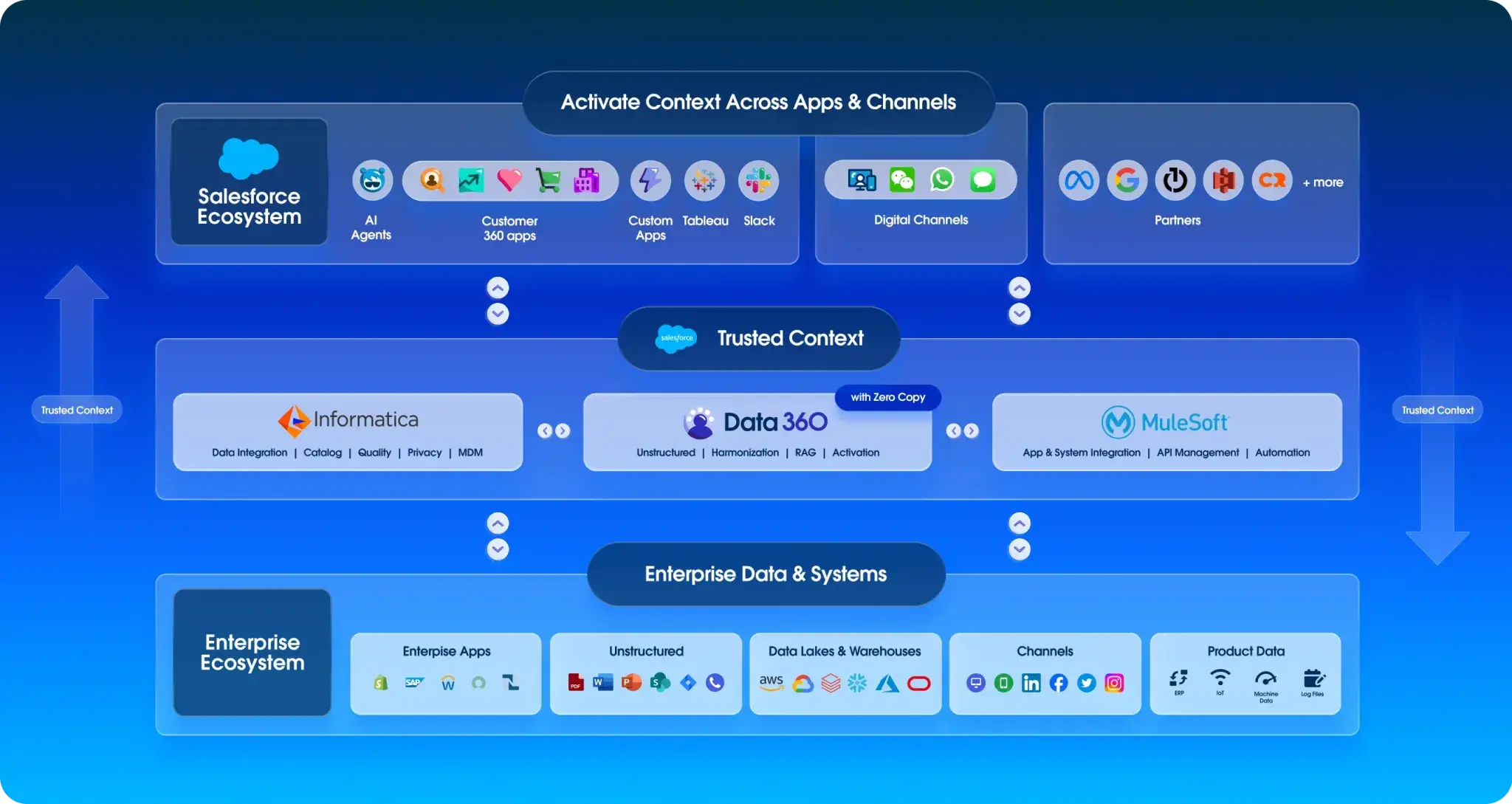 Connects the operational systems, APIs, and event streams that keep customer signals fresh. MuleSoft explicitly frames its platform around connecting Salesforce with any system and enabling event-driven architectures for real-time experiences. (Mulesoft)